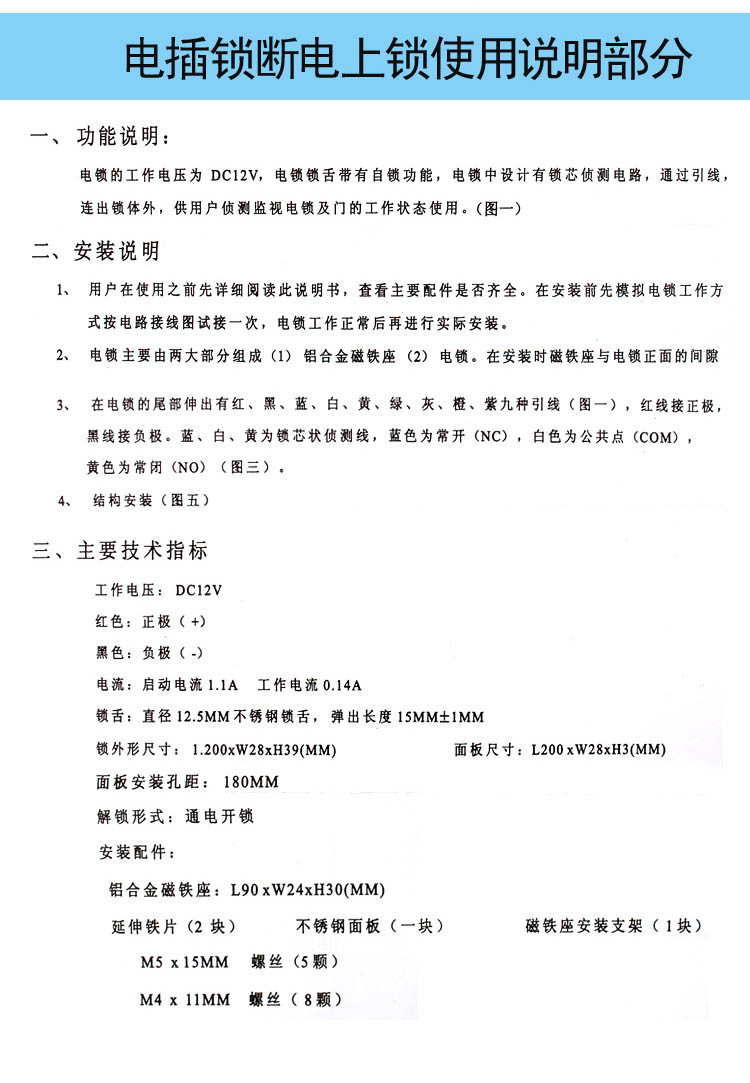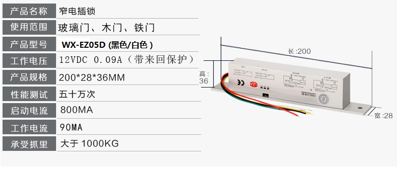 产品目录 产品门磁:超低温 型号:WX-EZ05D 工作温度:30度恒温 安装范围:木门/玻璃门/防盗门等 暗装电插锁 信号输出:COM /NO/NC