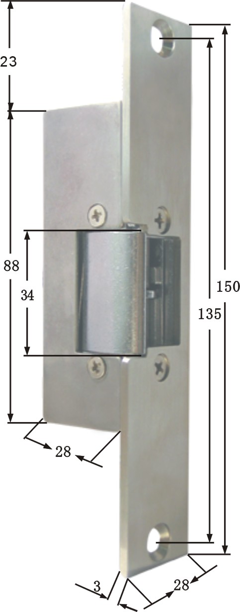 抗拉力:250Kg 电压:DC(12V±15%) 工作电流为240mA ZC150B-NC 工作电流为120mA 尺寸:150 X 28 X 21 mm 适用范围:适用于任何有框门、消防门 可以选择:断电开锁或者通电开锁 |